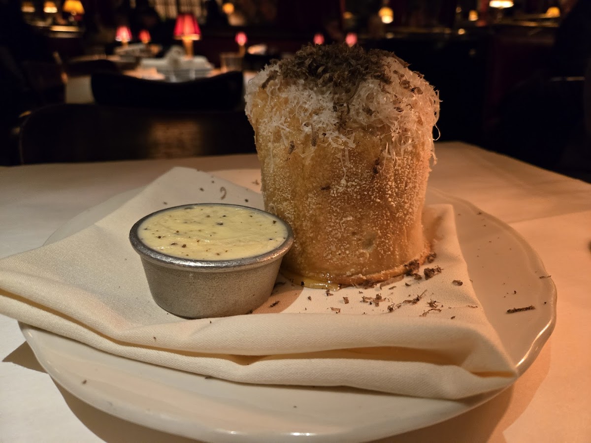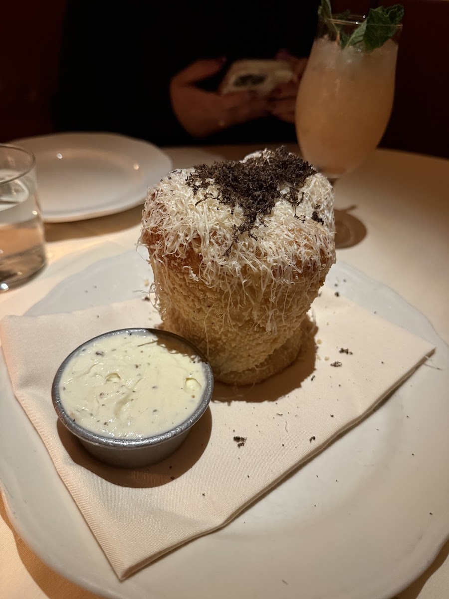 Obsessed with the service and the vibe! The hostess for reservations is in the back behind the bar, which was a tad confusing. Martini was 5/5 with Sipsmith gin. Surprisingly, the monkey bread was worth the $35. I was on the fence at first, because I know a lot of places go over the top with the truffles, but this was a tasteful truffle, as I like to say, not too heavy handed and perfectly balanced. We ordered the butter lettuce salad, double cheeseburger, steak frites, and side of broccoli. All very fresh and seasoned quite well. The double cheeseburger was melt in your mouth and the steak was cooked to perfection. Would I come back? Probably! But I wouldn’t go out of my way to make a reservation. Worth a try and definitely a fun, old school city feel.
