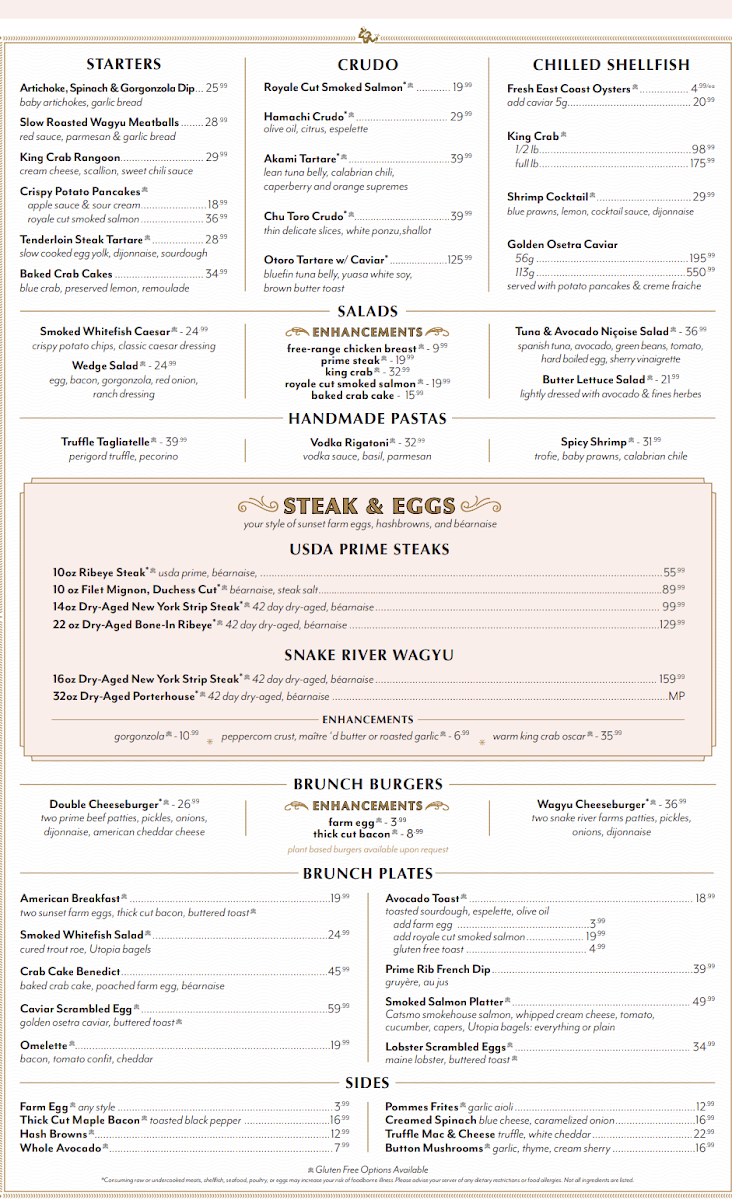 The menu is complemented by shareable starters like Truffle Monkey Bread and King Crab Rangoon, perfect for gathering around with friends. Sides such as Creamed Spinach or Truffle Mac & Cheese provide satisfying, flavorful additions that pair well with the main dishes. For those looking to end on a sweet note, desserts like Lemon Meringue Pie and Strawberry Vacherin offer a gentle balance to the savory courses.