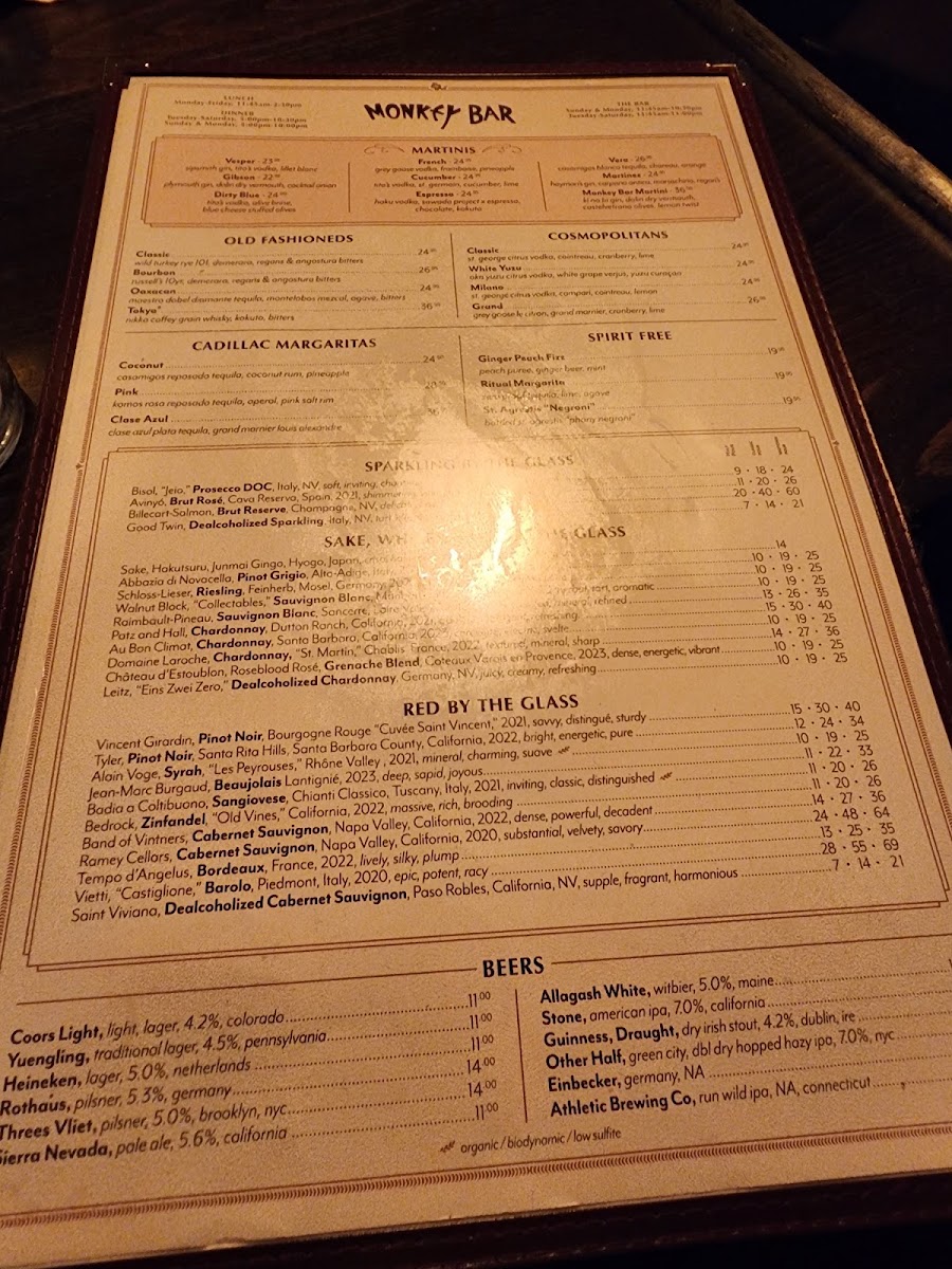 Overall, the menu at Monkey Bar supports a comfortable yet refined dining experience. It suits moments when you want to enjoy thoughtfully prepared American fare in an inviting setting where the conversation flows as easily as the cocktails.