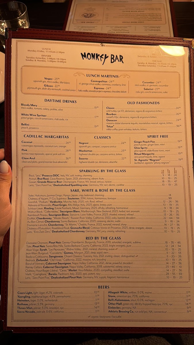 Monkey Bar Menu